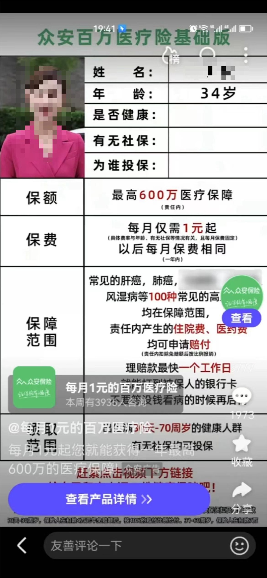 李濱表示,一般保險公司會將此類業(yè)務(wù)委托給技術(shù)公司和中介公司,比如保險代理公司或經(jīng)紀(jì)公司,它們通過社交平臺、短信等方式進行推廣,完成線上的承保工作和保險銷售工作。在這個過程中,部分保險公司或銷售機構(gòu)還可能會涉嫌從社交平臺獲取消費者的身份信息。