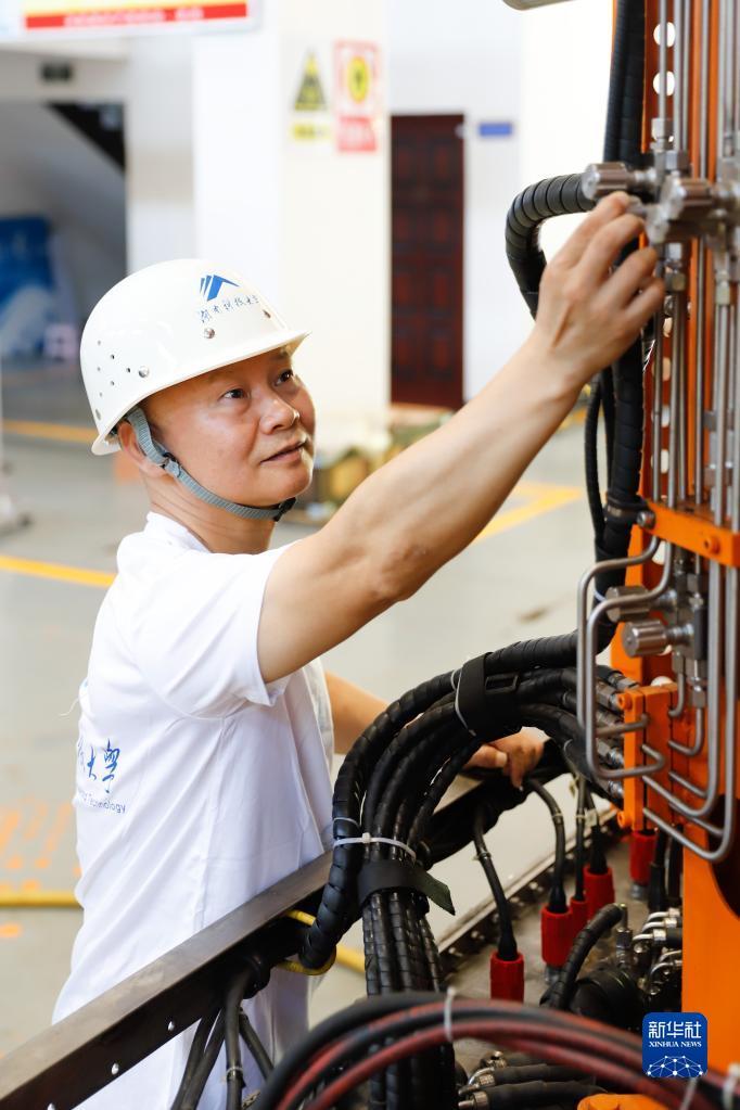 萬步炎在湖南科技大學(xué)海洋實(shí)驗(yàn)室工作(2022年7月25日攝)。新華社發(fā)