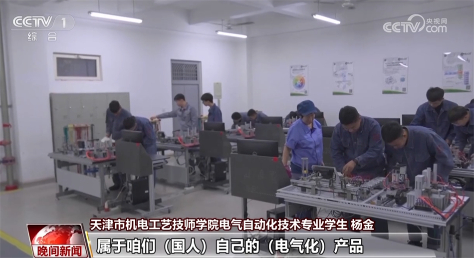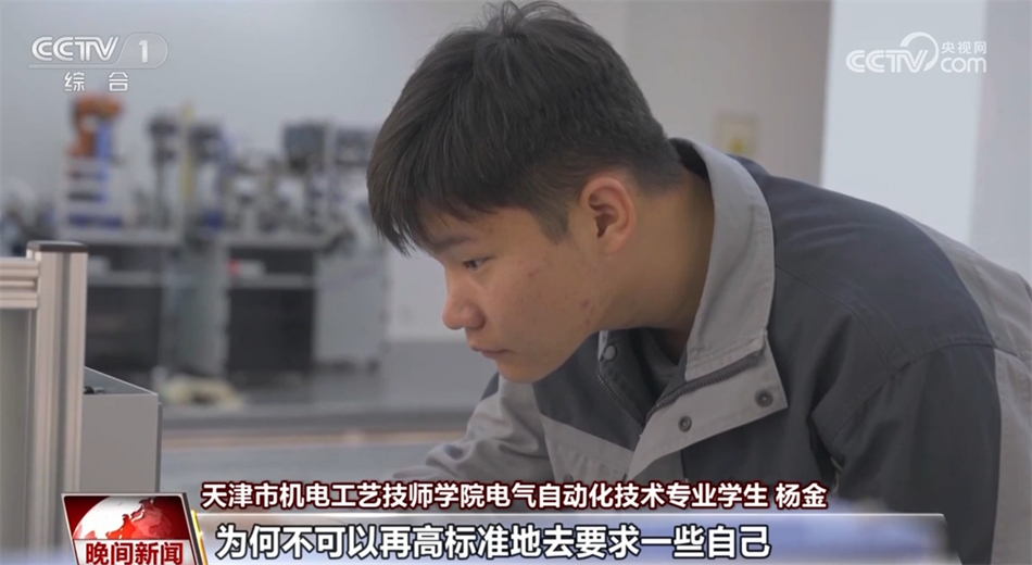 天津市機(jī)電工藝技師學(xué)院電氣自動化技術(shù)專業(yè)學(xué)生 楊金:讓每一顆螺絲、每一個(gè)部件都能發(fā)揮出它最大的作用,這就是我的需要和目標(biāo)了。(未來希望)自主去研發(fā)需要使用的機(jī)器,可以去創(chuàng)造(更多)屬于咱們(國人)自己的(電氣化)產(chǎn)品。