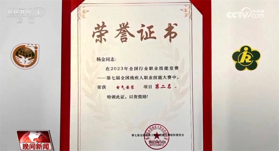今年,在取得第七屆全國殘疾人職業(yè)技能大賽參賽資格后,楊金每天都堅(jiān)持12小時(shí)的高強(qiáng)度訓(xùn)練,最終在電氣安裝項(xiàng)目上拿到了銀牌。