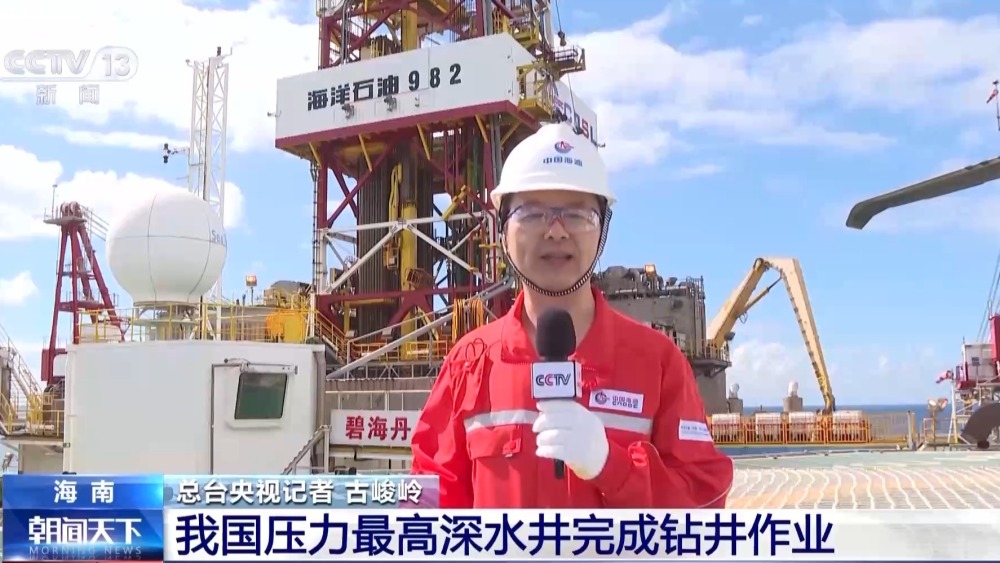 總臺央視記者 古峻嶺:我現(xiàn)在是在海南島東南方向約180公里處的海洋石油982鉆井平臺上,在我腳下約1000米深處的海底 ,就是剛剛完成鉆井作業(yè)的A12井,它的地層絕對壓力超過69兆帕,相當(dāng)于我們家用高壓鍋工作壓力的1000倍。