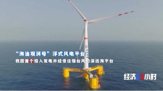 距離海南文昌海岸線136公里的海洋深處,“海油觀瀾號(hào)”浮式風(fēng)電平臺(tái)迎風(fēng)挺立。這是我國第一個(gè)投入發(fā)電并經(jīng)受住強(qiáng)臺(tái)風(fēng)的深遠(yuǎn)海風(fēng)電平臺(tái),于今年5月份并網(wǎng)發(fā)電。