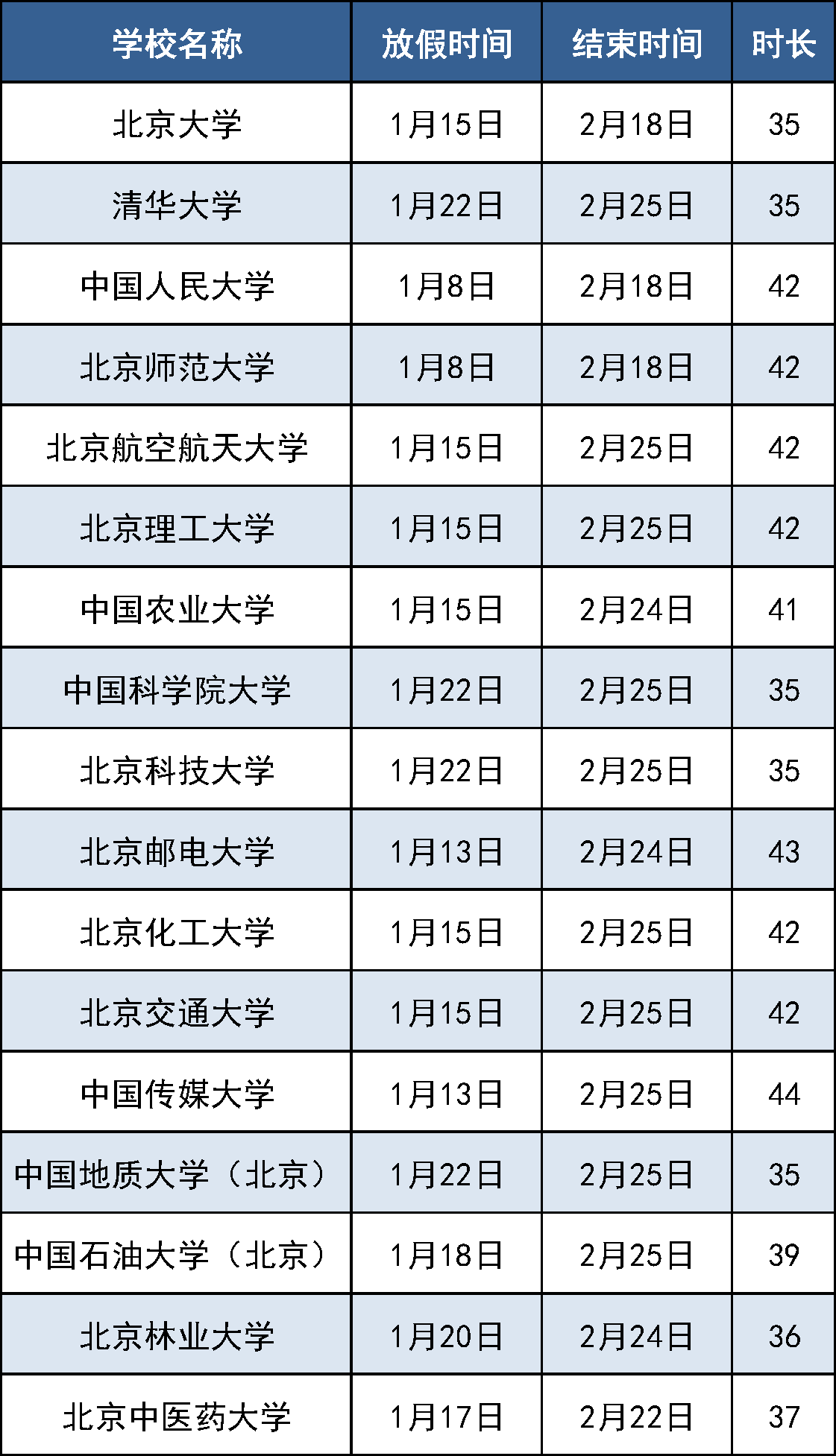 央廣網(wǎng)北京1月3日消息(記者 馮儀) 寒假在即,北京各大高校紛紛公布2024年寒假放假安排。北京大學(xué)、清華大學(xué)、中國人民大學(xué)等近40所高校公布的放假安排中,最長的假期達48天。