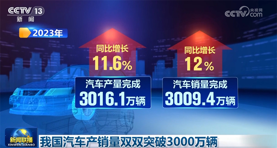 中國(guó)汽車工業(yè)協(xié)會(huì)1月11日發(fā)布的數(shù)據(jù)顯示,2023年,我國(guó)汽車產(chǎn)銷量首次雙雙突破3000萬(wàn)輛,創(chuàng)歷史新高。