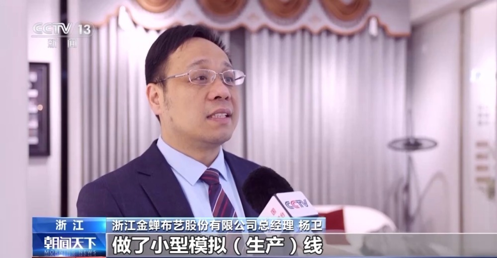浙江金蟬布藝股份有限公司總經(jīng)理 楊衛(wèi):剛開(kāi)始,父輩們會(huì)覺(jué)得投資好大,它效果怎么樣?然后我列了各種數(shù)據(jù)做了小型模擬生產(chǎn)線,把這些結(jié)果給父親看,最后父親覺(jué)得確實(shí)應(yīng)該走智能化的道路,然后我們就更大規(guī)模投建整個(gè)的智能工廠。