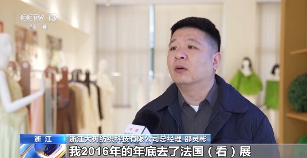 浙江大樹(shù)紡織科技有限公司總經(jīng)理 邵靈彬:我2016年的年底去了法國(guó)看展,基本上是奢侈品買(mǎi)面料的一個(gè)展會(huì)。我當(dāng)時(shí)給自己設(shè)的一個(gè)夢(mèng)想,10年之內(nèi)我想進(jìn)展會(huì)。