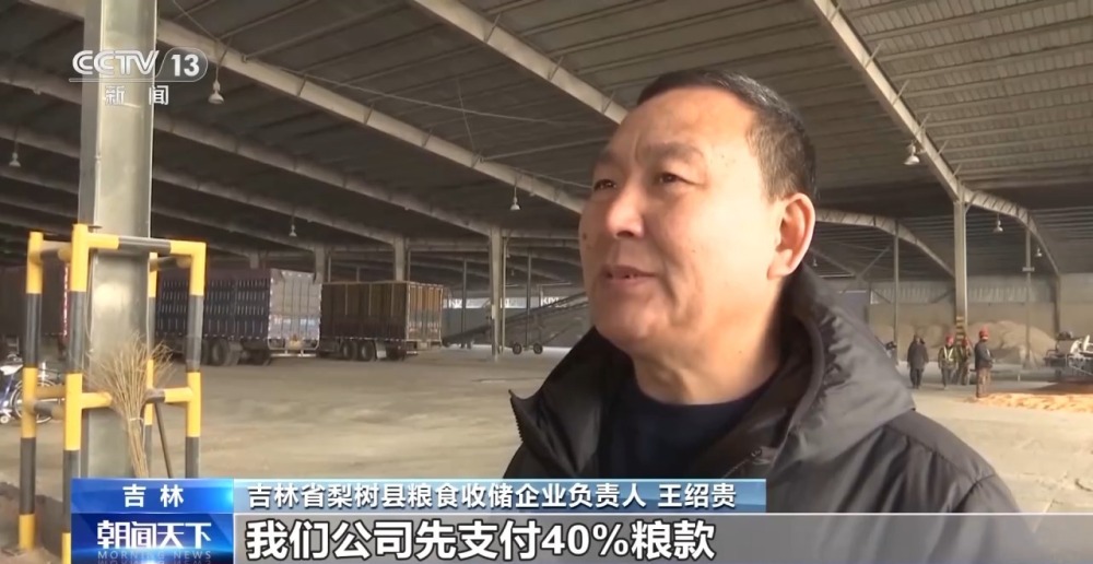吉林省梨樹縣糧食收儲企業(yè)負責人 王紹貴:合作社或者是種糧大戶可以先把糧送到我們公司,我們公司先支付40%糧款,剩余部分賣糧戶可以在合適的價格,確定價格之后再一起結算。