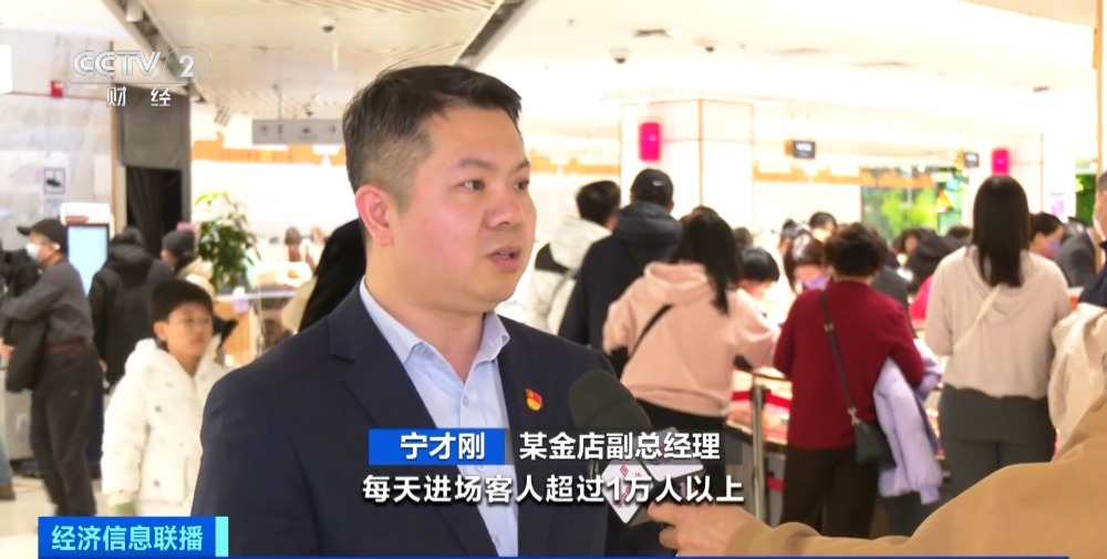 某金店副總經(jīng)理 寧才剛:每天進(jìn)場的客人非常多,我們總店每天進(jìn)場的客人超過1萬人。從單個(gè)品類來看,轉(zhuǎn)運(yùn)等非常受歡迎,每天的銷售量都是幾千件以上。