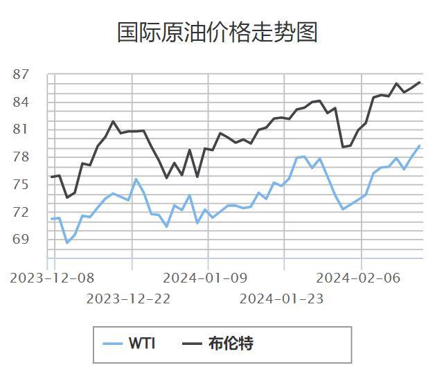 本周期橫跨春節(jié)假期前后,原油市場(chǎng)整體偏強(qiáng)運(yùn)行。截至上周五(當(dāng)?shù)貢r(shí)間2月16日)收盤,WTI 3月原油期貨收漲1.16美元,漲幅1.49%報(bào)79.19美元/桶;布倫特4月原油期貨收漲0.61美元,漲幅0.74%報(bào)83.47美元/桶。