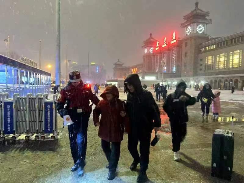 北京豐臺(tái)站地區(qū)就采取多種措施應(yīng)對(duì)極端低溫天氣,服務(wù)好春運(yùn)返程夜間集中大客流。增加與鐵路會(huì)商頻度,落實(shí)每半小時(shí)溝通聯(lián)絡(luò)一次,及時(shí)準(zhǔn)確掌握列車晚點(diǎn)停運(yùn)情況,根據(jù)客流情況調(diào)整夜班公交和公交高鐵專線的保障,協(xié)調(diào)網(wǎng)約車企業(yè),保障運(yùn)力。按照“隨下隨掃”原則進(jìn)行掃雪鏟冰作業(yè),緊盯東南出站口、連廊周邊、匝道、地鐵口附近、停車場等重點(diǎn)區(qū)域,做好清掃、采取防滑措施并做好防滑提示。在南廣場和地下出租車調(diào)度站,為有需要的旅客和司機(jī)提供紅糖姜水。