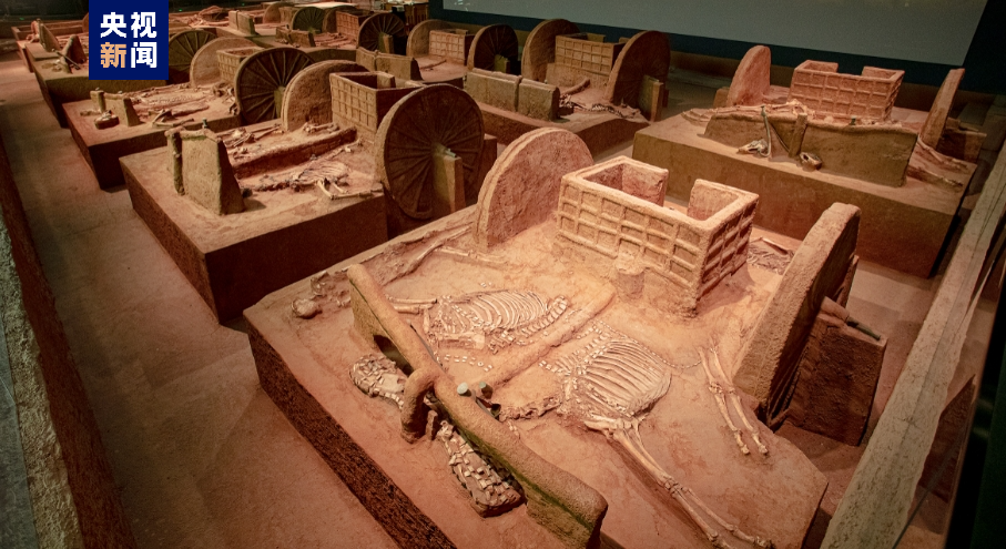 “車轔轔馬蕭蕭”殷墟車馬遺跡展,展廳內(nèi)23座車馬坑遺跡,矩陣式陳列,氣勢震撼。展示了商代裝飾華麗、結(jié)構(gòu)精巧、機動靈活的馬車,是中國目前所見最早的馬車實物標本,更是對三千多年前商文明的生動詮釋。經(jīng)過近百年探索,殷墟發(fā)掘車馬坑九十余座,再現(xiàn)了商代馬車面貌。馬車不僅作為王室貴族的代步工具,也在驛站傳遞、田獵出行、載兵作戰(zhàn)等方面發(fā)揮著重要作用。殷墟馬車多埋于大型墓葬附近或墓道內(nèi)、以車、馬、人合葬居多。殷墟早期以車馬器陪葬,車馬器套數(shù)代表主人所擁有的馬車數(shù)量,見證著主人身份等級的高低;晚期馬車陪葬成為中、上級貴族的專屬,彰顯著墓主人的赫赫權(quán)威,亦是馬車陪葬制度的萌芽。