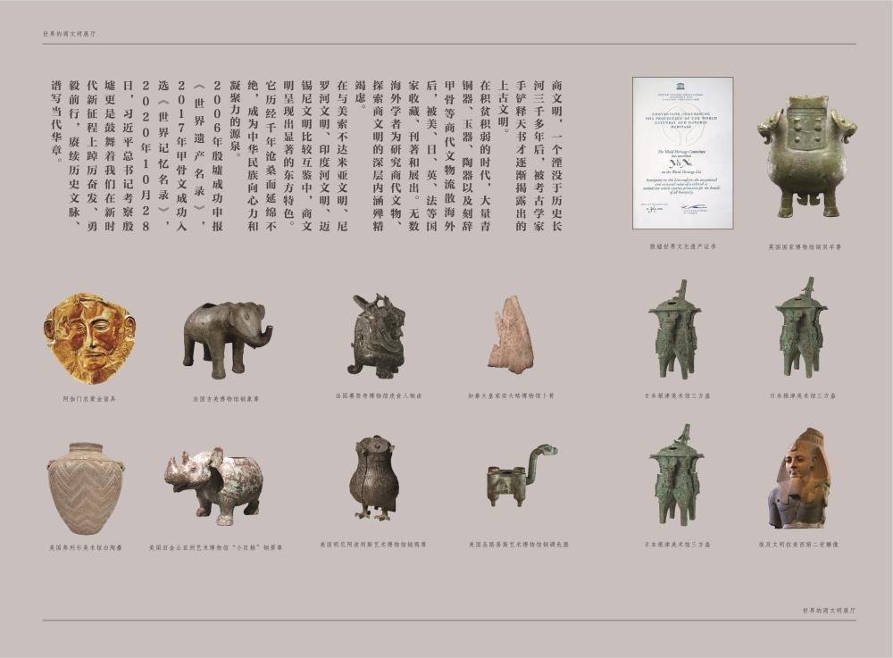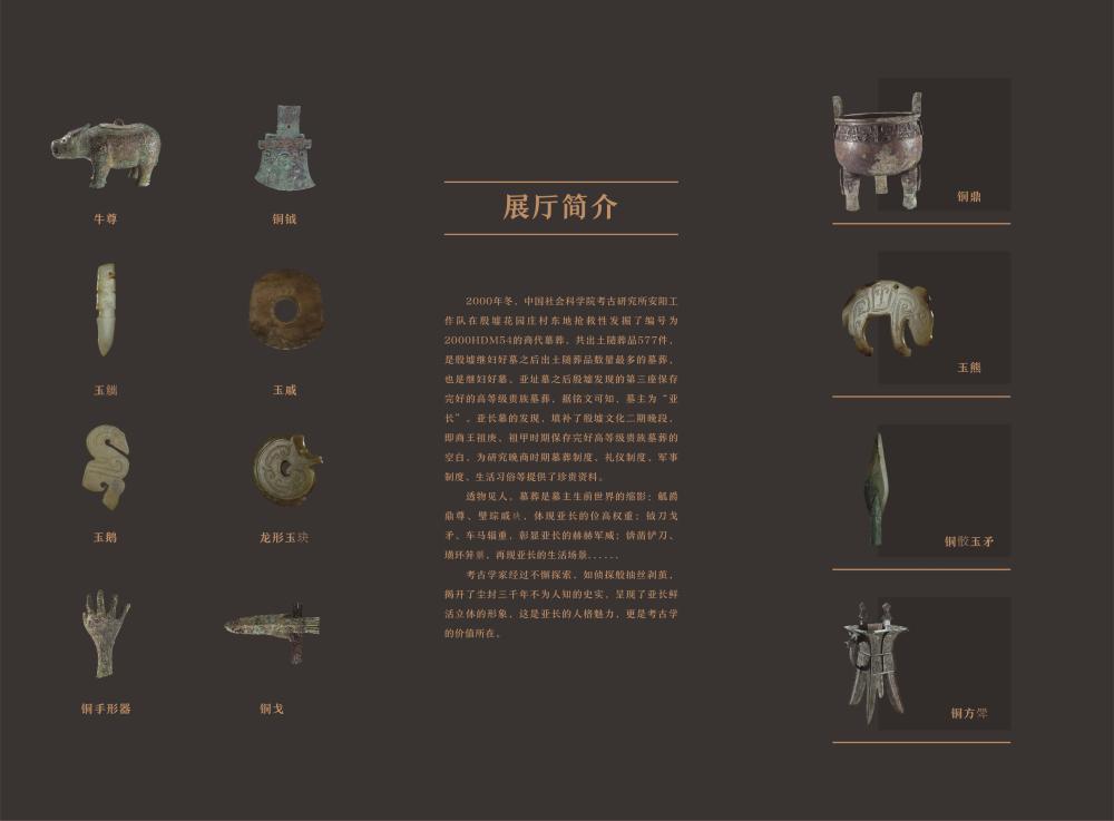 基本陳列將長期對公眾開放,展示幾代殷墟考古人接力前行、不斷求索,取得了一次又一次重要發(fā)掘成果,對夏商都邑的深入研究,為不同時期不同區(qū)域的商文化研究提供了對比標尺。眾多首次亮相的各類珍貴文物再現(xiàn)了商朝繁盛的城市文明,完善的禮樂文明、發(fā)達的青銅文明、燦爛的文字文明以及高超的科技文明。全面系統(tǒng)地展現(xiàn)了我國商代晚期都城的風(fēng)貌,讓全世界看到一個中華文明早期發(fā)展階段最為輝煌的時代——大邑商。