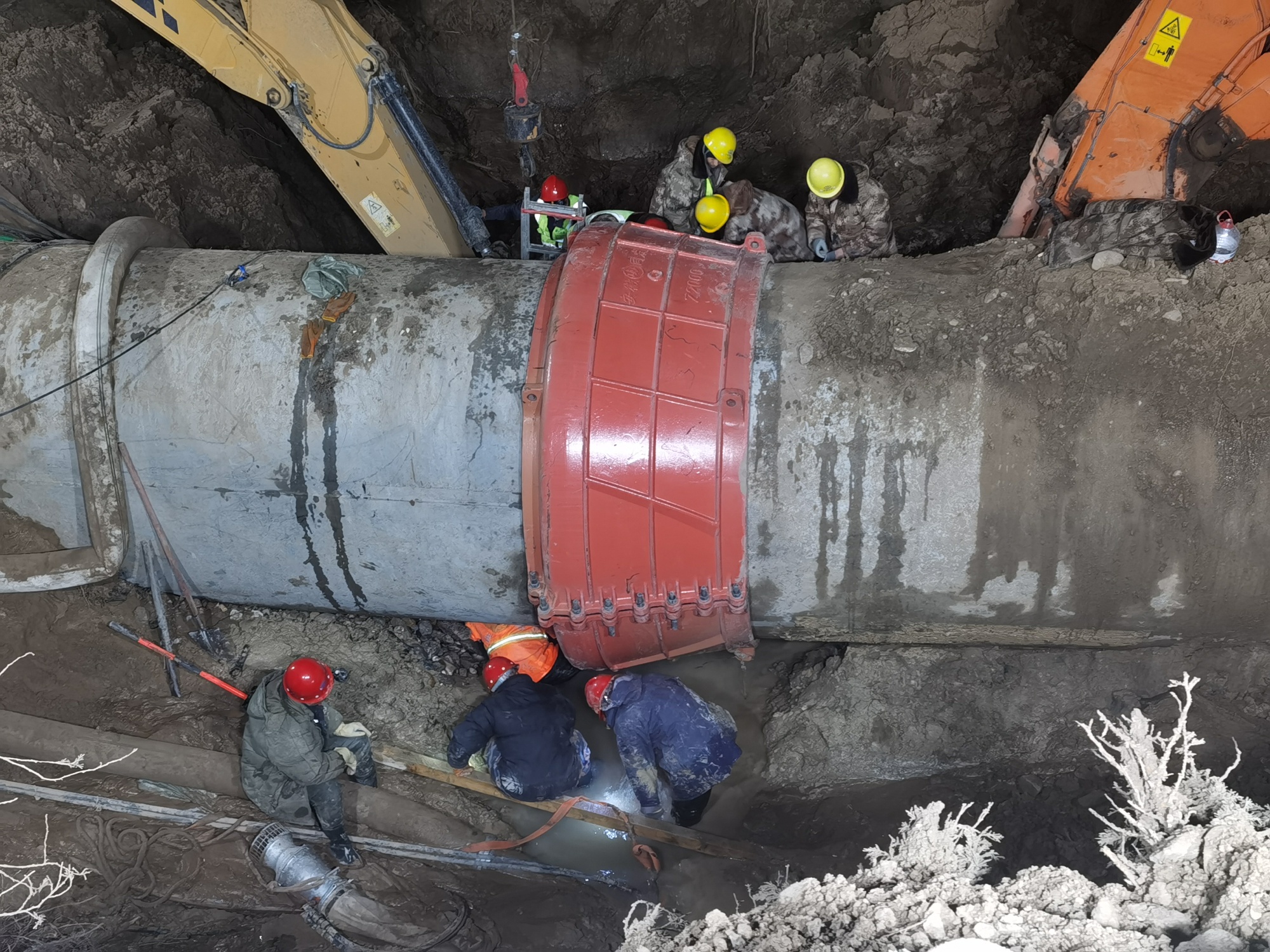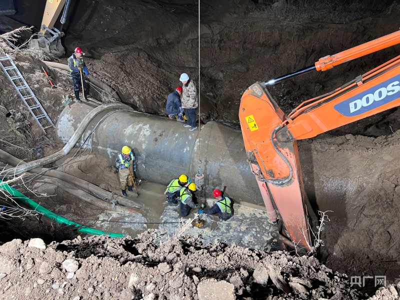 張文偉說:“因?yàn)檫@個(gè)管道是個(gè)兩米直徑的供水管線,是個(gè)主管線,它破裂以后水量特別大。管線是在耕地上,維修車輛是進(jìn)不去的。維修首先得修筑施工通道,所有車輛人員靠近不了,然后關(guān)閘停水,走施工通道過去以后,進(jìn)行原有管道抽排,管道里都是滿水,必須把水排干凈才能搶修,才能發(fā)現(xiàn)它是哪兒壞了,我們采取哪種方式來進(jìn)行搶修。搶修方案有很多種,我們也提前都有預(yù)案。所以抽水時(shí)間很長(zhǎng),上游就有7萬多立方的水,抽排就是一個(gè)很大的難點(diǎn)?!?/p>