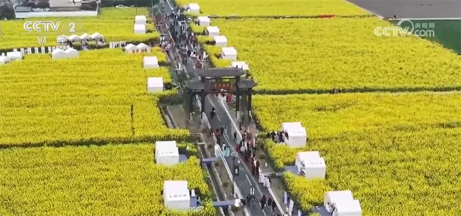 央視網(wǎng)消息:眼下,在四川崇州,近30萬畝油菜花已進(jìn)入盛花期,在田園春景中,花田火鍋、花田集市等新場景的營造,吸引眾多游客前來賞花踏青。