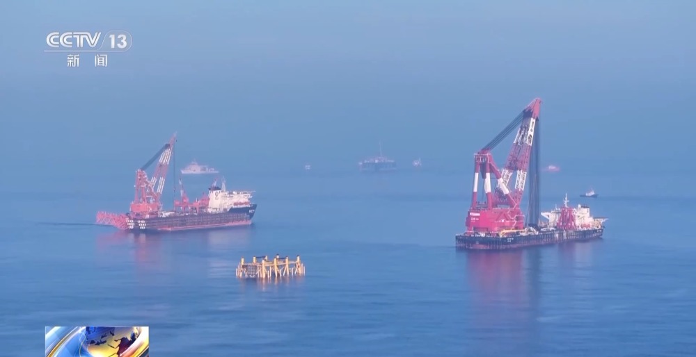 總臺央視記者 古峻嶺:在“海基二號”海上安裝作業(yè)現場,經過16個小時的連續(xù)施工作業(yè),“?;枴币呀浻勺蛱旎葡滤畷r的橫向漂浮狀態(tài),變?yōu)橹绷顟B(tài),它高達338米的龐大身軀,已經穩(wěn)穩(wěn)站立在了324米深的海床之上,僅有10余米的部分露出水面,接下來工作人員將以它為基礎,建設安裝一座萬噸級海上鉆井平臺。未來它將在臺風和惡劣海況的輪番考驗下,在這里穩(wěn)穩(wěn)矗立30年,源源不斷地將深海油氣輸送到千家萬戶,為保障國家能源安全提供堅強支撐。