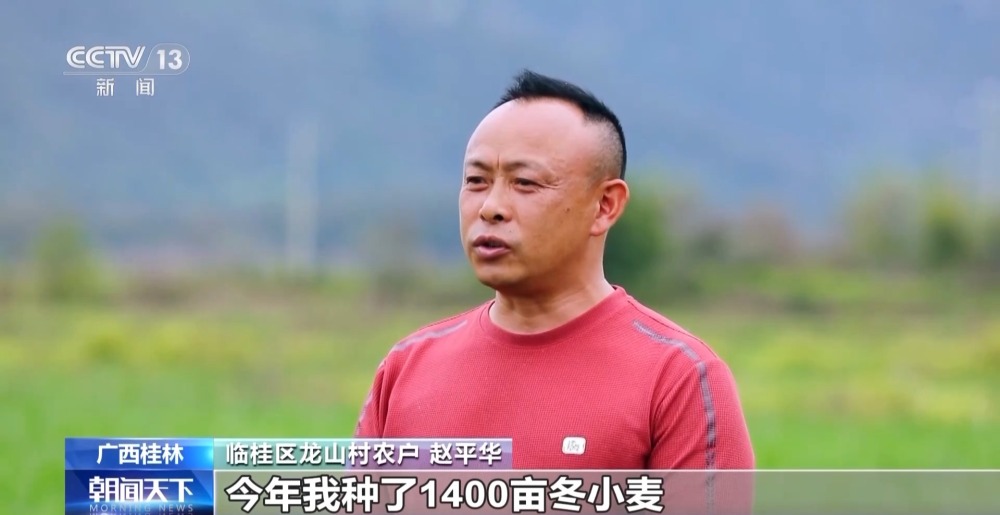 臨桂區(qū)龍山村農(nóng)戶 趙平華:今年我種了1400畝冬小麥,現(xiàn)在進(jìn)入抽穗期,4月中旬進(jìn)入揚(yáng)花期,接下來我要加強(qiáng)管理,爭(zhēng)取今年有個(gè)好收成。