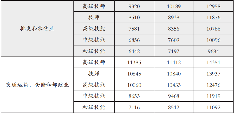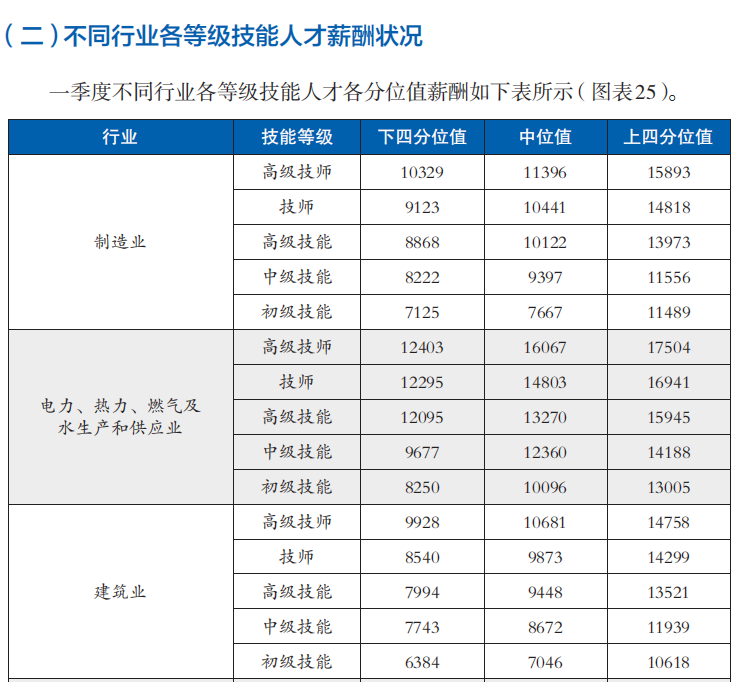 一季度部分行業(yè)各等級技能人才薪酬分位值(單位:元/月)(圖源:北京市人力資源和社會(huì)保障局官方網(wǎng)站截圖)