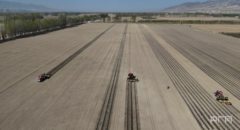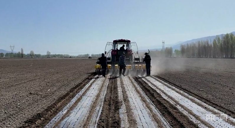 種植戶使用大型農機開展機械化鋪膜播種作業(yè) (吾蘭 攝)