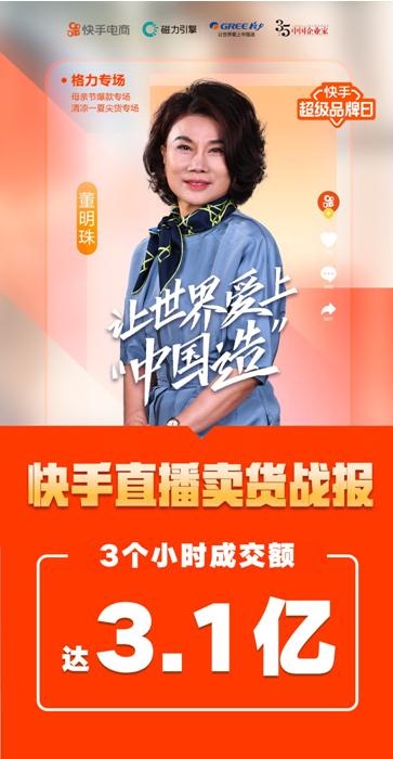 董明珠快手帶貨3小時(shí)成交破3億 老鐵消費(fèi)力刷新認(rèn)知