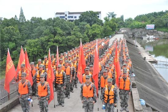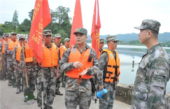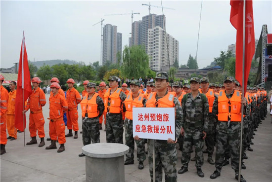 下午15時,大竹縣烏木水庫大堤上,200余名預(yù)備役官兵身著橘色救生衣集結(jié)完畢,應(yīng)急分隊的紅旗迎風(fēng)招展,機(jī)關(guān)各科協(xié)調(diào)的保障力量也源源不斷往集結(jié)地域開進(jìn)。15時20分,應(yīng)急分隊已到達(dá)指定地域,救援物資全部到位。