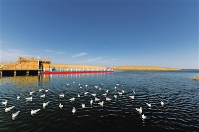 “湖濱密生蘆葦,入秋蘆花飛舞,宛若柳絮。……鵝翔天際,鴨浮綠波,碧水青天,馬嘶雁鳴……”居延海曾經(jīng)失去過這樣的神韻風(fēng)姿。 近年來,隨著保護(hù)力度的加大與生態(tài)環(huán)境逐漸恢復(fù),湖中生機(jī)再現(xiàn),樹木起死回生,水鳥凌空飛翔,這顆大漠深處的藍(lán)色明珠再一次熠熠生輝?。ㄓ浾?懷特烏勒斯 攝影報(bào)道)