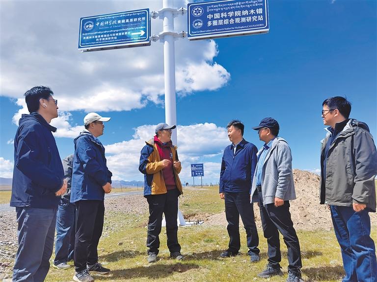 圖為科技部科學(xué)普及司工作人員和援藏專家一行,在當(dāng)雄縣調(diào)研中國科學(xué)院納木錯多圈層綜合觀測研究站、國家電網(wǎng)公司西藏羊八井高海拔試驗(yàn)基地。記者 李洲 攝