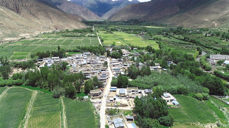 圖為位于溫曲河谷的山南市乃東區(qū)結(jié)巴鄉(xiāng)格桑村1組俯瞰圖。通訊員 潘高 記者 汪純 攝