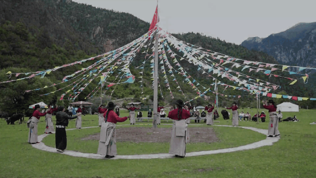 緊鄰國道317川藏北線,一座如同世外桃源般的藏族村寨——西藏昌都市江達縣同普鄉(xiāng)夏榮村,隱藏在草木青翠的崇山峻嶺與層層相疊的梯田間。側耳傾聽,山谷間傳來一陣陣悠揚的藏族民歌,放眼望去,當?shù)鼐用窈陀慰蛡冋凇盀⑦帧保ㄒ鉃橐环N休閑、娛樂的方式)營地上載歌載舞。青山綠水間,飛舞的袍袖,靚麗的藏式民居,陣陣歡笑聲,構成了一幅民族團結、鄉(xiāng)村振興的對口援藏幫扶暖心圖景。