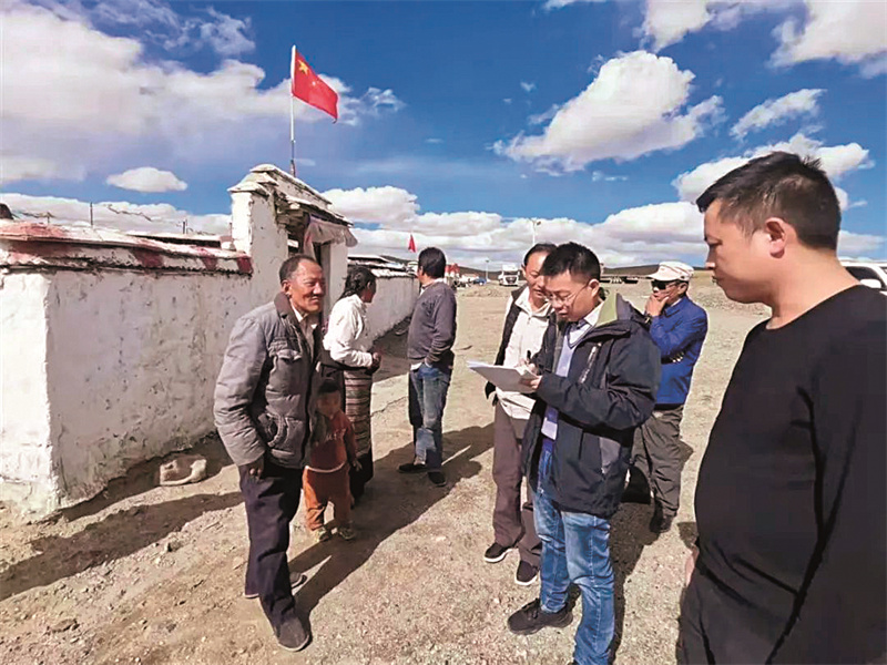 羅文兵(右三)在那曲市走入農(nóng)戶,與群眾交流。