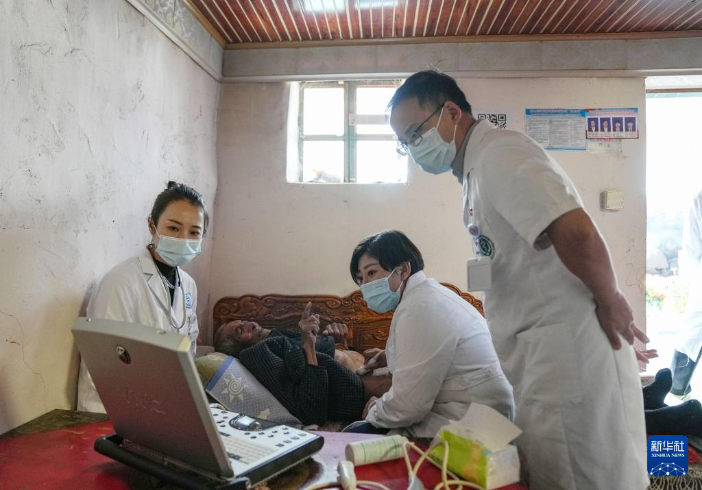 8月30日,義診隊(duì)在重癥病人家中為病人做腹部B超。新華社記者 晉美多吉 攝