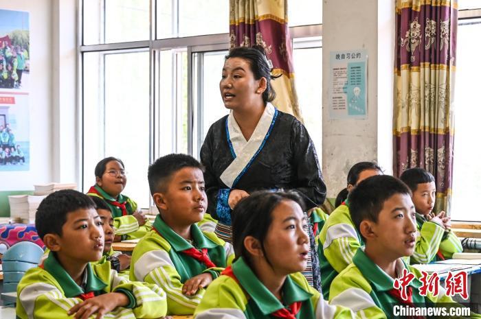 西藏札達縣九年一貫制學校,達娃玉珍老師正在上課。貢確 攝