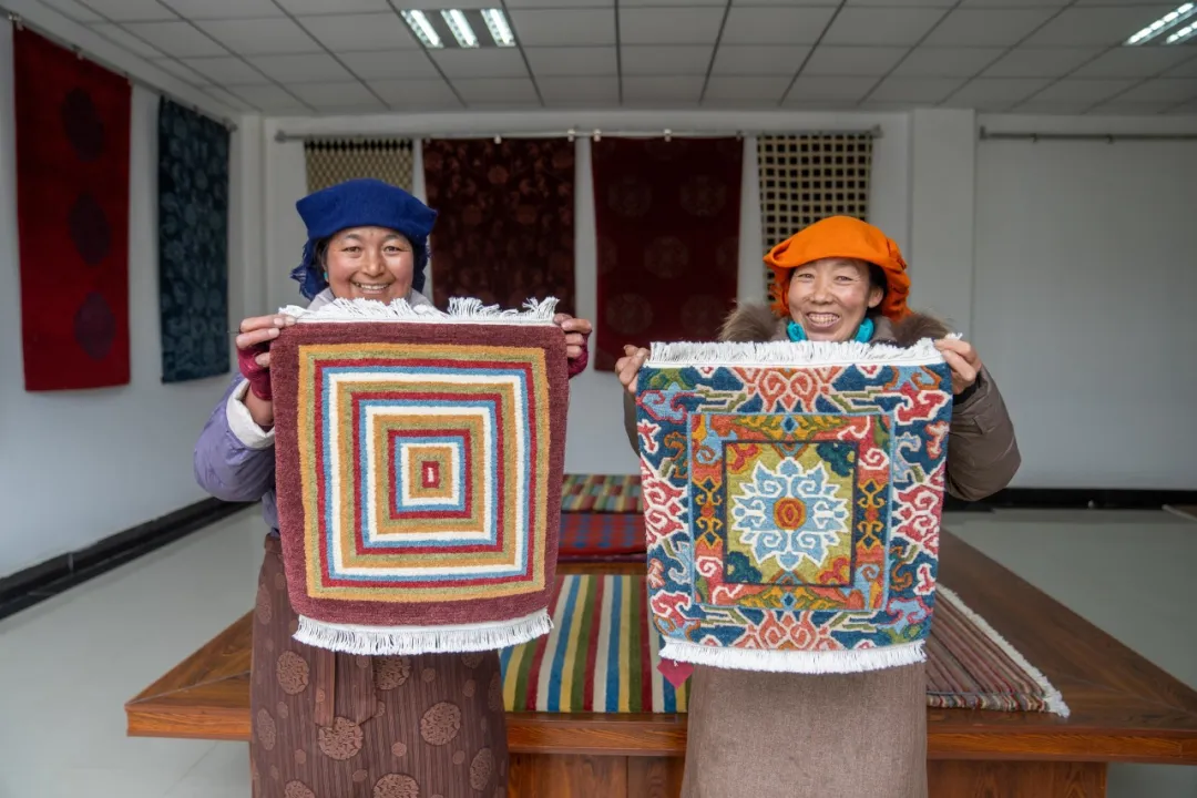 近年來,西藏山南市瓊結(jié)縣將傳統(tǒng)文化與鄉(xiāng)村振興相結(jié)合,通過援藏力量招商引資,成立公司生產(chǎn)純手工藏毯,同時還聘請藏毯手工藝人,為當?shù)厝罕娊淌诰幙椉妓?,在傳承傳統(tǒng)技藝的同時,拓寬農(nóng)牧民增收渠道。 新華社記者 旦增尼瑪曲珠 攝