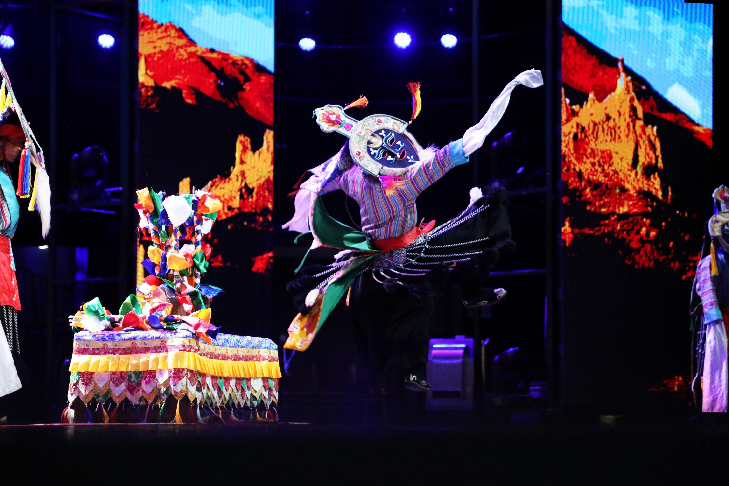 山東淄博廣電大劇院內(nèi),西藏昂仁縣迥巴藏戲表演隊(duì)演出的《諾桑王子》博得現(xiàn)場(chǎng)觀眾陣陣掌聲,讓這一璀璨的藏族“非遺”文化在齊魯大地綻放出絢麗色彩。