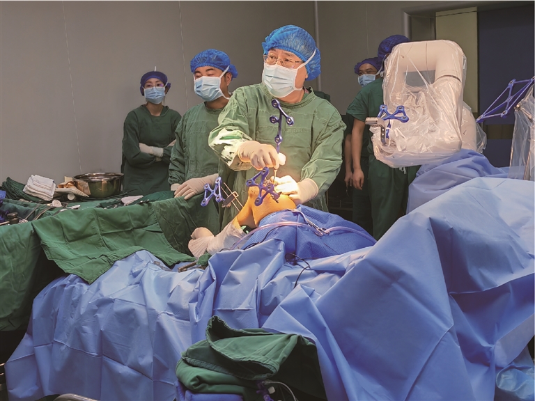 重慶援藏醫(yī)療專家開展西藏首例5G遠(yuǎn)程國產(chǎn)機器人全膝關(guān)節(jié)置換手術(shù)。