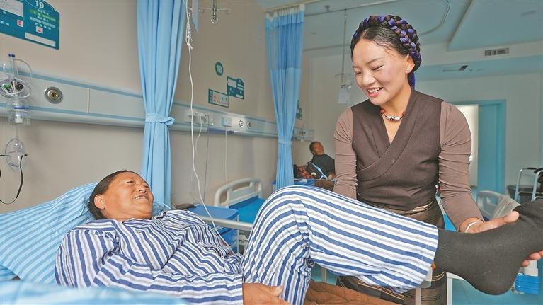圖為南京市第一醫(yī)院關節(jié)外科專家團隊了解患者術后康復情況。格桑倫珠 攝