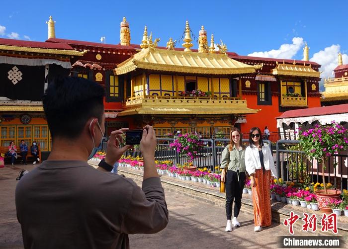 訪問團(tuán)成員在拉薩參觀大昭寺。冉文娟 攝