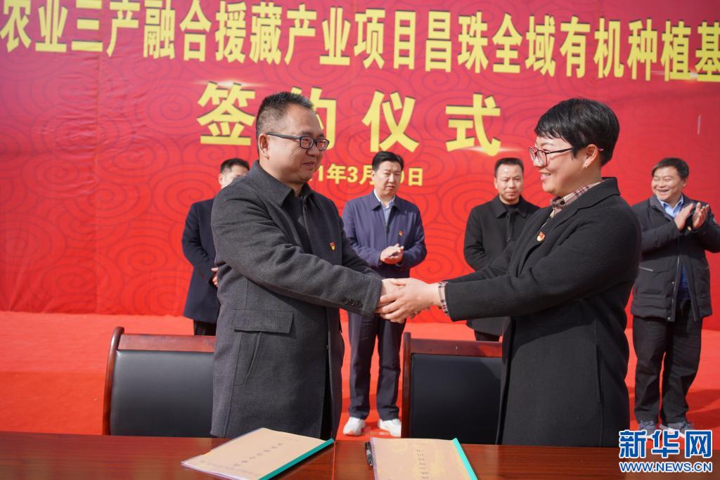山南昌珠全域有機(jī)種植基地項(xiàng)目簽約儀式現(xiàn)場(2021年3月20日攝)。(受訪者供圖)