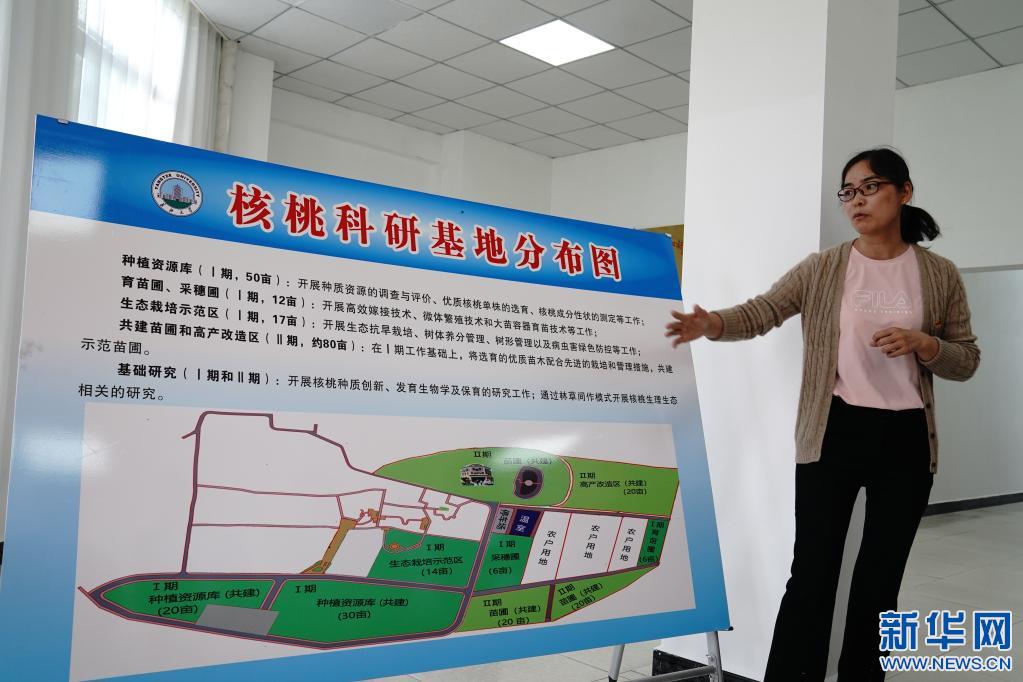 長江大學(xué)教師劉利平博士介紹核桃產(chǎn)業(yè)項(xiàng)目(2021年7月8日攝)。新華社記者 劉洪明 攝