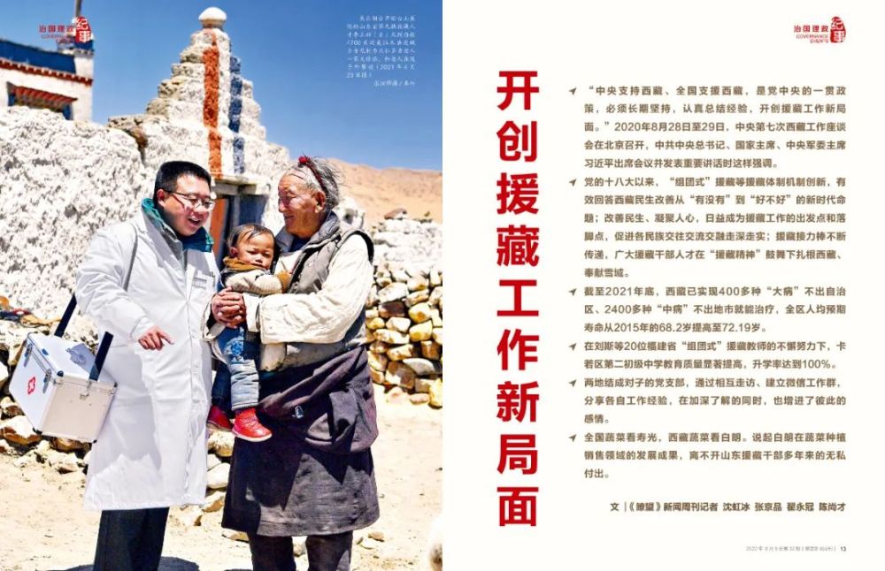 ◆ 黨的十八大以來,“組團式”援藏等援藏體制機制創(chuàng)新,有效回答西藏民生改善從“有沒有”到“好不好”的新時代命題;改善民生、凝聚人心,日益成為援藏工作的出發(fā)點和落腳點,促進各民族交往交流交融走深走實;援藏接力棒不斷傳遞,廣大援藏干部人才在“援藏精神”鼓舞下扎根西藏、奉獻雪域。