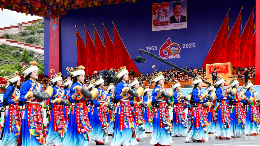 西藏自治區(qū)成立60周年慶祝大會(huì)群眾游行 攝影:趙振宇