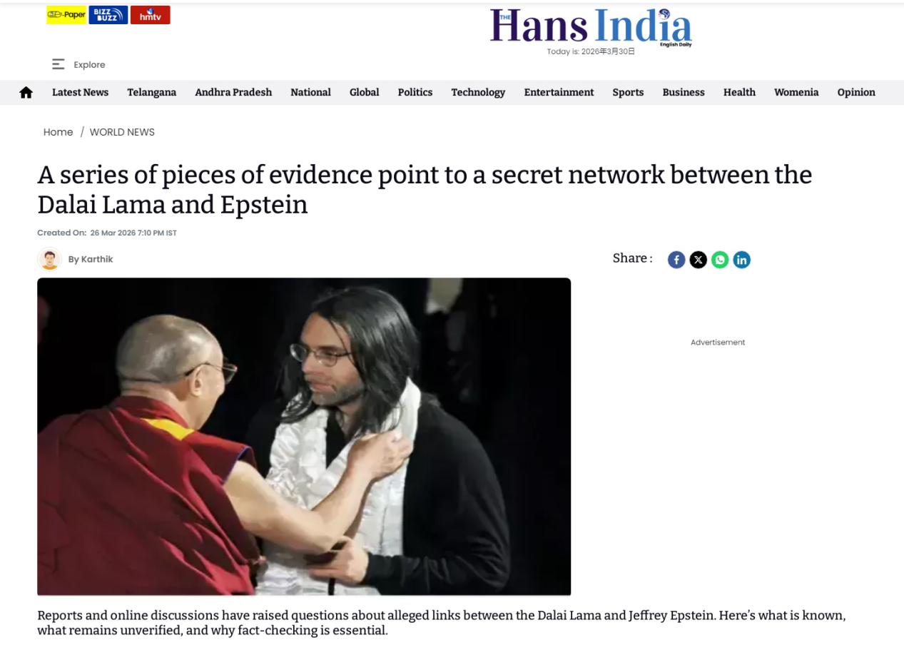 3月26日,印度LatestLY新聞網(wǎng)報道稱,愛潑斯坦一直力主將十四世達(dá)賴納入其核心社交圈,并為此作了具體安排。