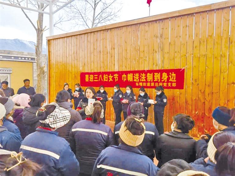 東嘎街道派出所全體民警不斷提高婦女兒童維權(quán)業(yè)務(wù)水平,引導(dǎo)廣大婦女兒童從思想上樹(shù)立維權(quán)意識(shí),開(kāi)展普法宣傳75次、心理健康講座進(jìn)校園52場(chǎng),創(chuàng)建“零家庭暴力小區(qū)”5家、關(guān)愛(ài)困難婦女兒童家庭17戶、開(kāi)展心理疏導(dǎo)150余人次。多次派出“巾幗宣講團(tuán)”前往轄區(qū)各學(xué)校、小區(qū)、社區(qū)等單位,組織開(kāi)展未成年人保護(hù)法及反家庭暴力等法律法規(guī)及心理健康知識(shí)講座;借助“三八”婦女節(jié)、“憲法日”“國(guó)家安全日”等節(jié)點(diǎn),開(kāi)展婦女兒童權(quán)益保護(hù)主題宣講?!敖韼叫v團(tuán)”受拉薩市婦女聯(lián)合會(huì)及堆龍德慶區(qū)婦女聯(lián)合會(huì)邀請(qǐng),多次前往拉薩市各縣區(qū)開(kāi)展“婦女兒童維權(quán)”法律宣講,深入群眾家中,用實(shí)際行動(dòng)向社會(huì)大眾普及法律法規(guī)知識(shí),尤其是維護(hù)婦女兒童權(quán)益的相關(guān)法律知識(shí),讓轄區(qū)群眾感受到法律的溫度。