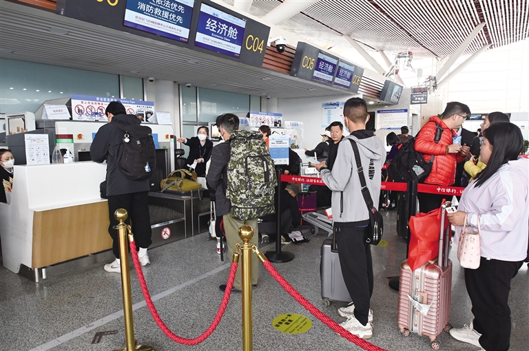 旅客在排隊(duì)辦理值機(jī)手續(xù)。資料圖