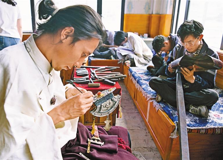 昌都市卡若區(qū)嘎瑪鄉(xiāng)位于扎曲河上游,群山環(huán)繞、風(fēng)光秀麗。嘎瑪鄉(xiāng)被譽(yù)為“民族手工藝之鄉(xiāng)”,當(dāng)?shù)厝罕娛来鷱氖绿瓶ɡL畫(huà)、金屬鍛造、石刻等,幾乎家家有工匠、戶戶有傳人。如今,在黨和政府的政策扶持下,嘎瑪鄉(xiāng)的手工藝品漸漸走出山溝,群眾也因此走上了致富路。