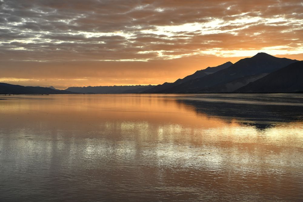 晚霞映照下的雅魯藏布江最寬處景色(7月30日攝)。新華社記者 張汝鋒 攝