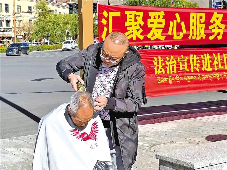 志愿者為社區(qū)老人理發(fā)。