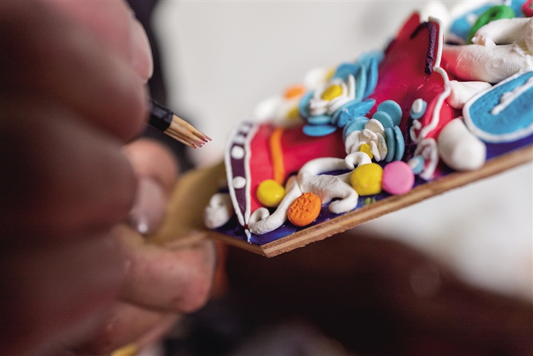 當(dāng)記者聊起如今市面上也有機(jī)器雕刻的酥油花時(shí),師傅羅布次仁停下手中的活,說(shuō)道:“酥油花是千年傳承下來(lái)的瑰寶,講究一年換一新,同樣也講究人們制作時(shí)注入的美好愿望和祝福。早在2013年,它就被列入西藏自治區(qū)級(jí)非物質(zhì)文化遺產(chǎn)名錄。如今雖然出現(xiàn)了機(jī)器雕刻的酥油花,但它們?nèi)绷舜鄠鞯牧α浚瑱C(jī)械復(fù)制不了指尖傳遞的溫度。我們要傳承好這門技藝。”
