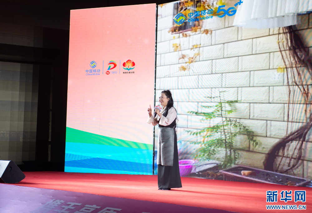 4月25日,中國移動(dòng)日喀則分公司宣講員拉平在講述《逐夢(mèng)世界屋脊,追求比珠峰更高》。新華網(wǎng) 旦增努布 攝