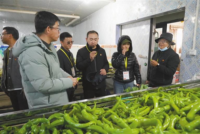 學(xué)員們?cè)诼∽涌h綠健蔬菜就業(yè)利民科技有限公司了解生產(chǎn)銷售情況。