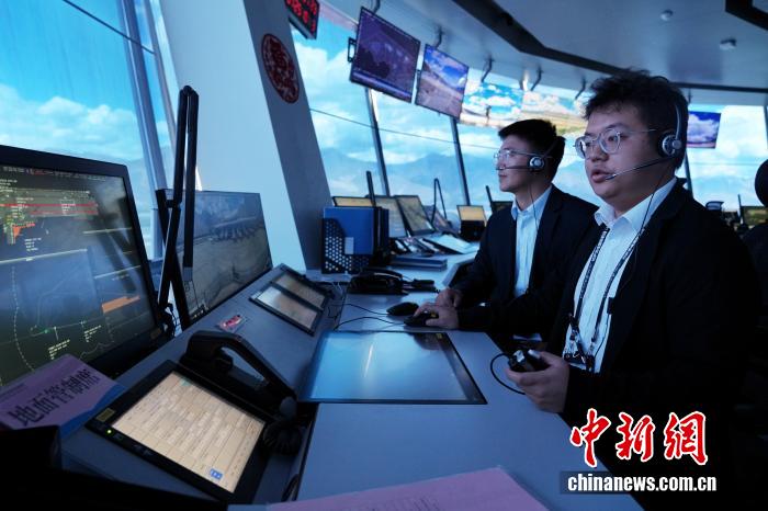 2025年7月22日,塔臺管制室?guī)О嘀魅蔚┰?左,藏族)與見習(xí)管制員管羽揚(yáng)(右)在拉薩貢嘎國際機(jī)場塔臺指揮航班進(jìn)離場。據(jù)悉2025年是西藏自治區(qū)成立60周年,也是西藏民航通航60周年。中新社記者 張祥毅 攝